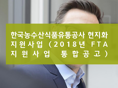| 한국농수산식품유통공사 현지화 지원사업 (2018년 FTA 지원사업 통합공고) (0) | 2018.05.21 |