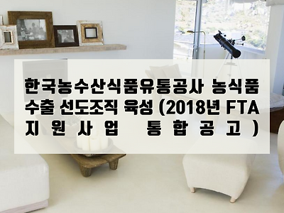 | 한국농수산식품유통공사 농식품 수출 선도조직 육성 (2018년 FTA 지원사업 통합공고) (0) | 2018.05.19 |